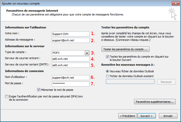 3 : le type de compte (IMAP ou POP3) ici ce sera une adresse programmé en POP3