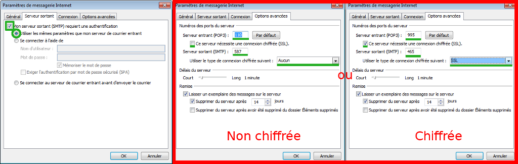 en fonction de la connexion chiffré que vous allez choisir les port de serveur entrant et sortant devrons etre modifier changer .